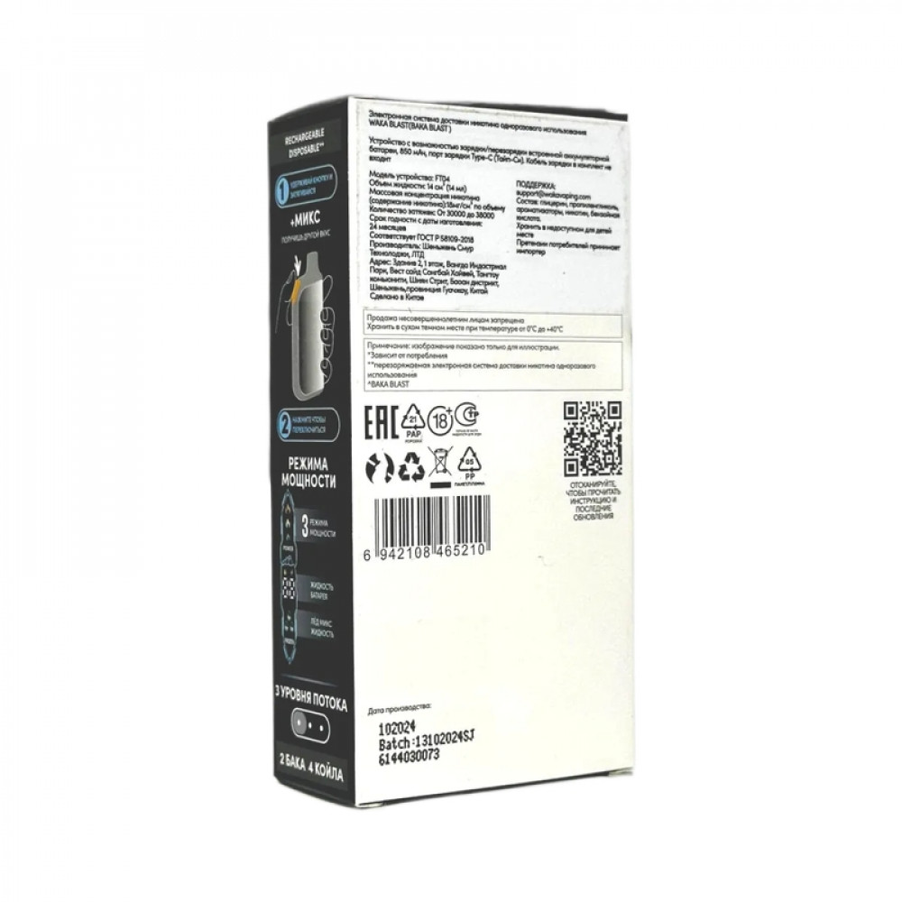 Технические характеристики WAKA BLAST 38000 Hard - Тройная ягода + лед микс